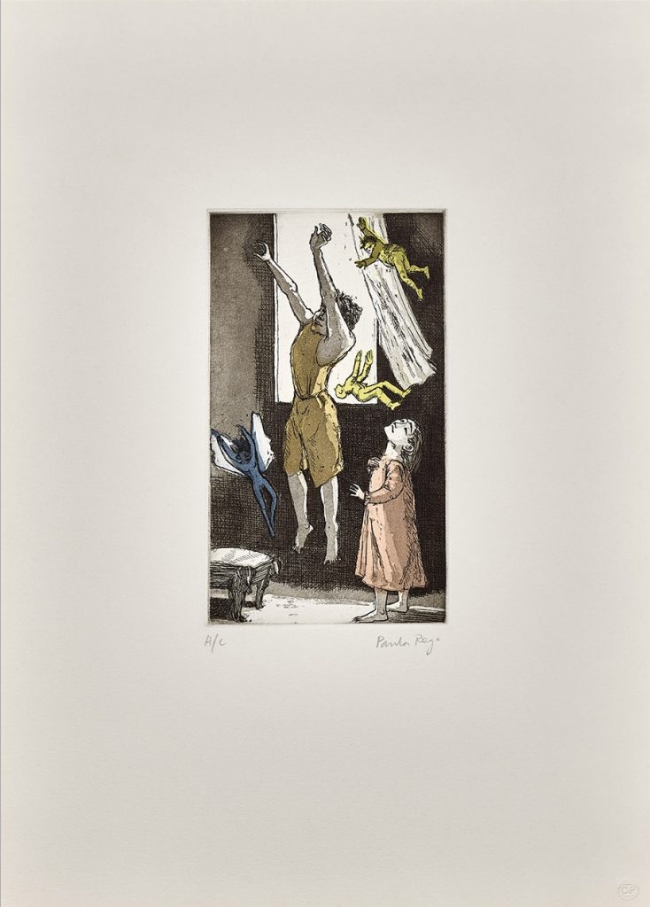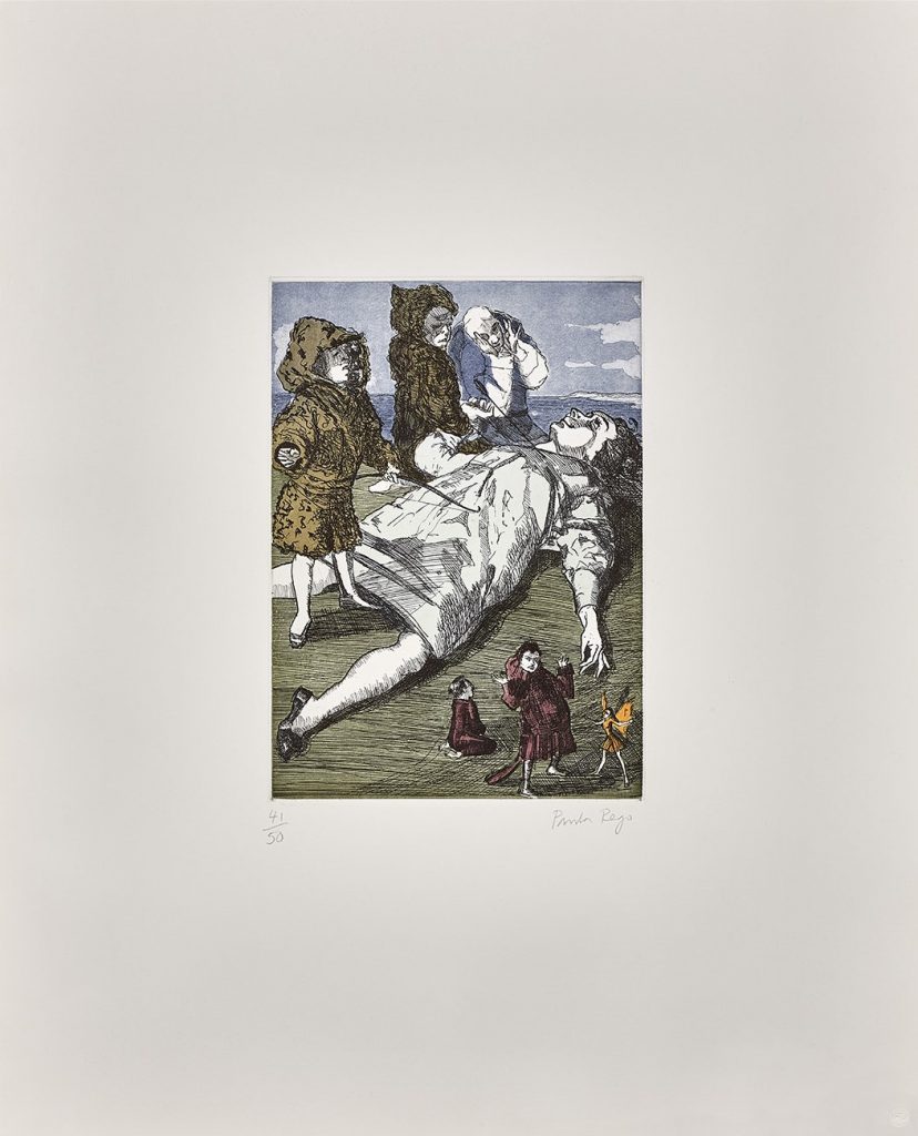 Paula Rego grandit dans une famille libérale lorsque le pays tombe sous la dictature catholique de droite d’António de Oliveira Salazar. Ses parents travaillant au Royaume-Uni, elle passe une partie de sa jeunesse avec sa grand-mère à Ericeira. C’est elle qui va lui enseigner nombre de contes traditionnels. (…) Vivant entre le Portugal et le Royaume-Uni, Paula Rego voit son œuvre régulièrement censurée par le gouvernement du dictateur Salazar dans les années 1960.